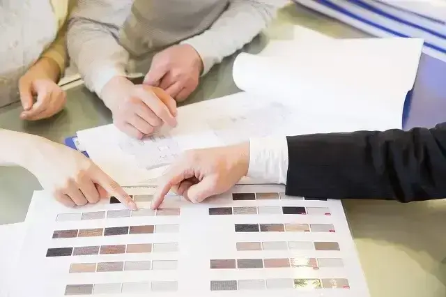 事前のお打ち合わせは入念に実施。カラーサンプルをお見せし、お選びいただいたカラーでA4サイズの板を作成してご確認いただいております。ご不明な点は遠慮なくご質問ください。